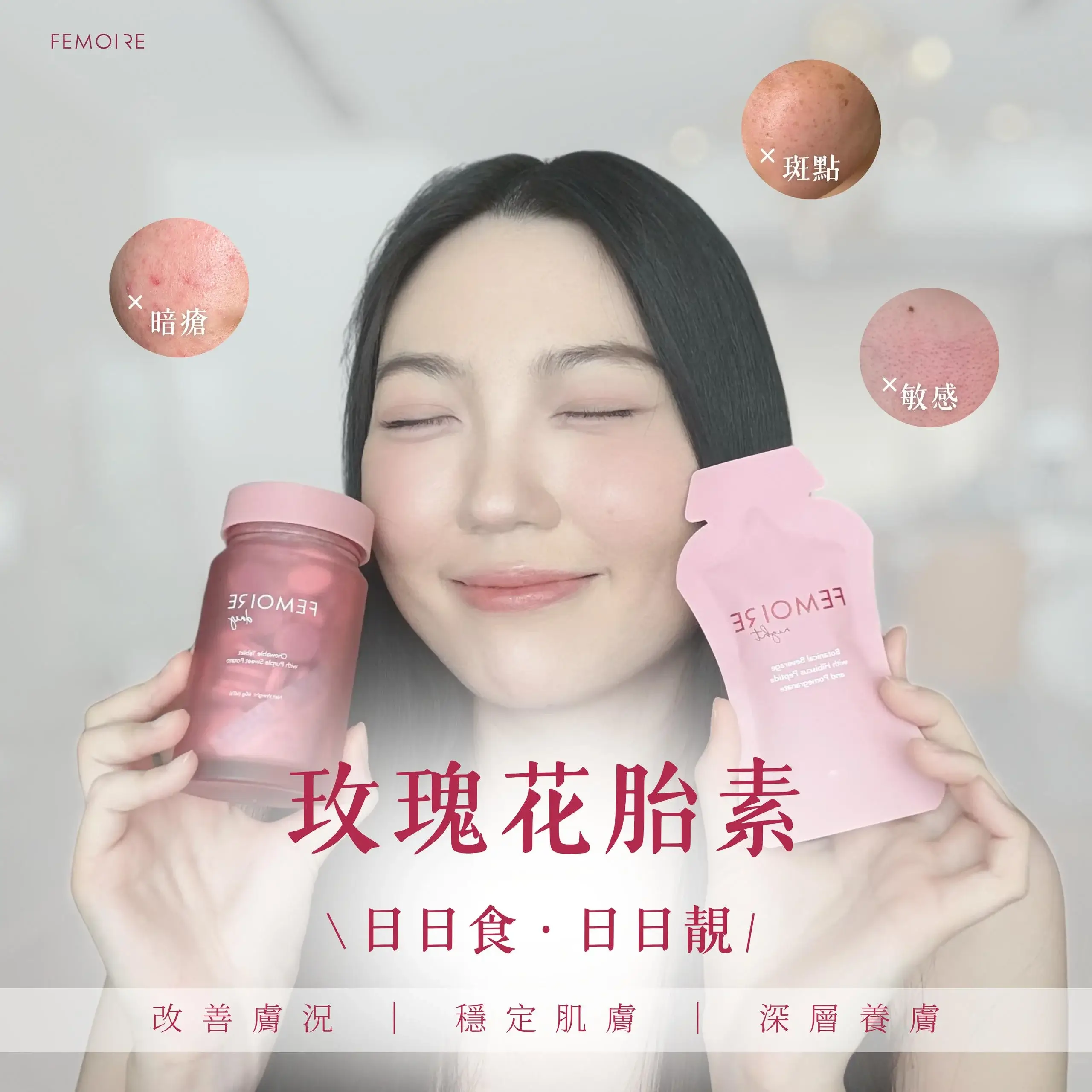 「以前總覺得自己的斑是操勞生仔的代價,有一種委屈感。食咗 FEMOIRE 一個療程,斑真係開始淡化,最重要係成個人望落精神晒,終於可以素顏自信出街!」